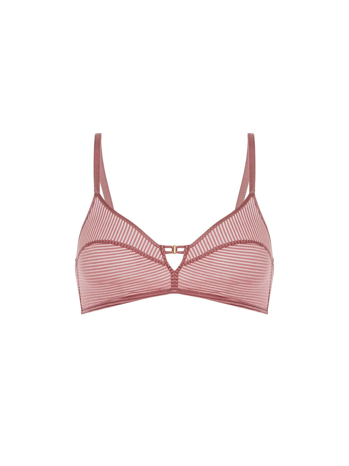 Soutien-gorge sans armatures en tulle fantaisie rayé.