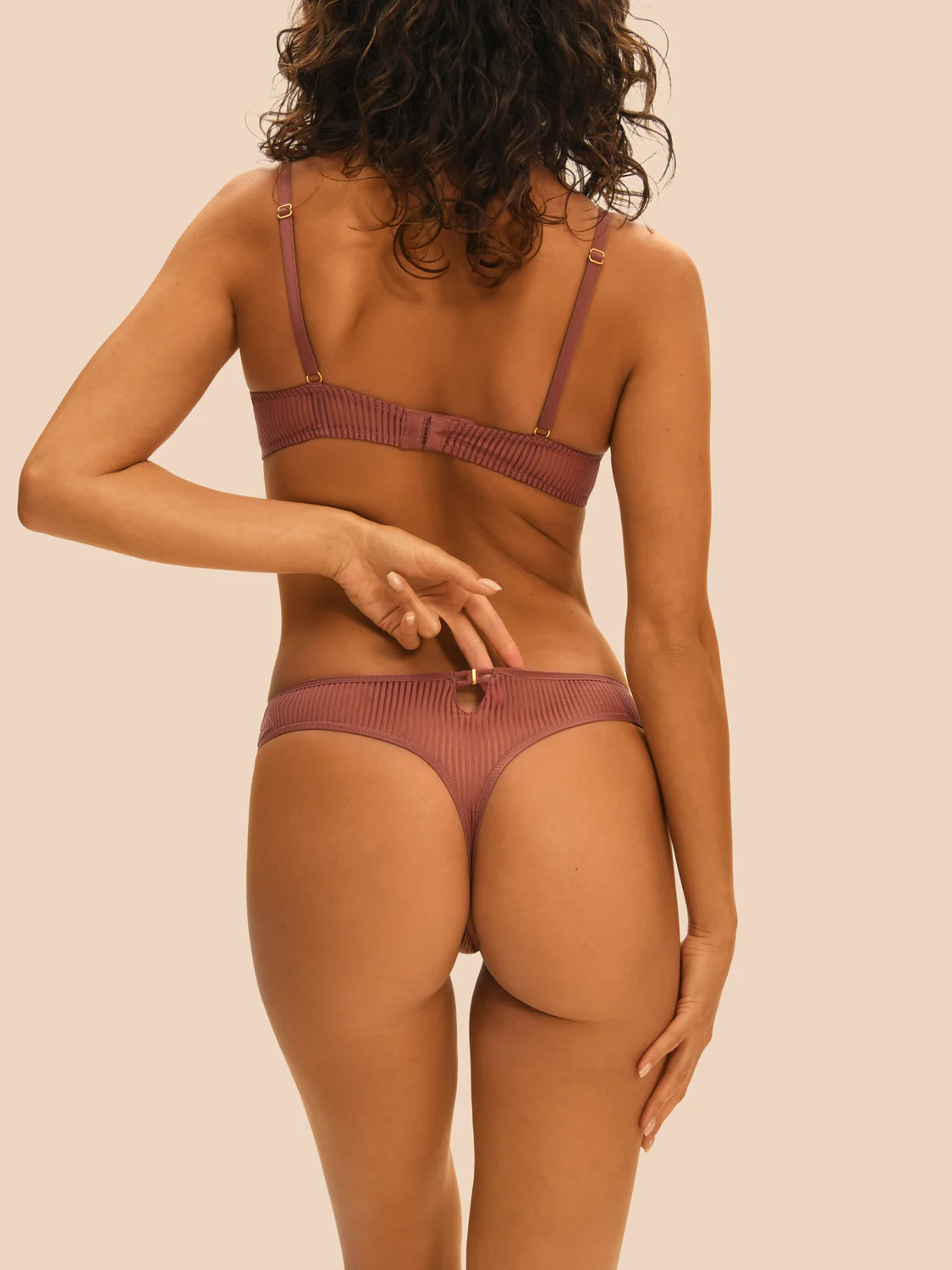 Soutien-gorge sans armatures en tulle fantaisie rayé. • Toucher ultra-doux.• Galbe naturel.• Effet rétro.• Séparateur avec bijou doré graphique.• Elastique à la basque pour plus de maintien.• Dos avec agrafage.• Bretelles réglables. Référence : 1F4250.783