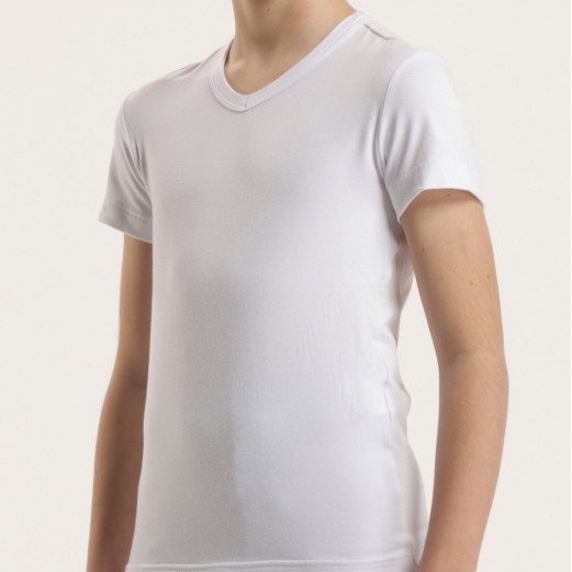 T shirt danse taille enfant, manches courtes et col en V Matière : 92% viscose, 8% élasthanne Couleurs : blanc, noir Tailles : 4, 6, 8, 10, 12