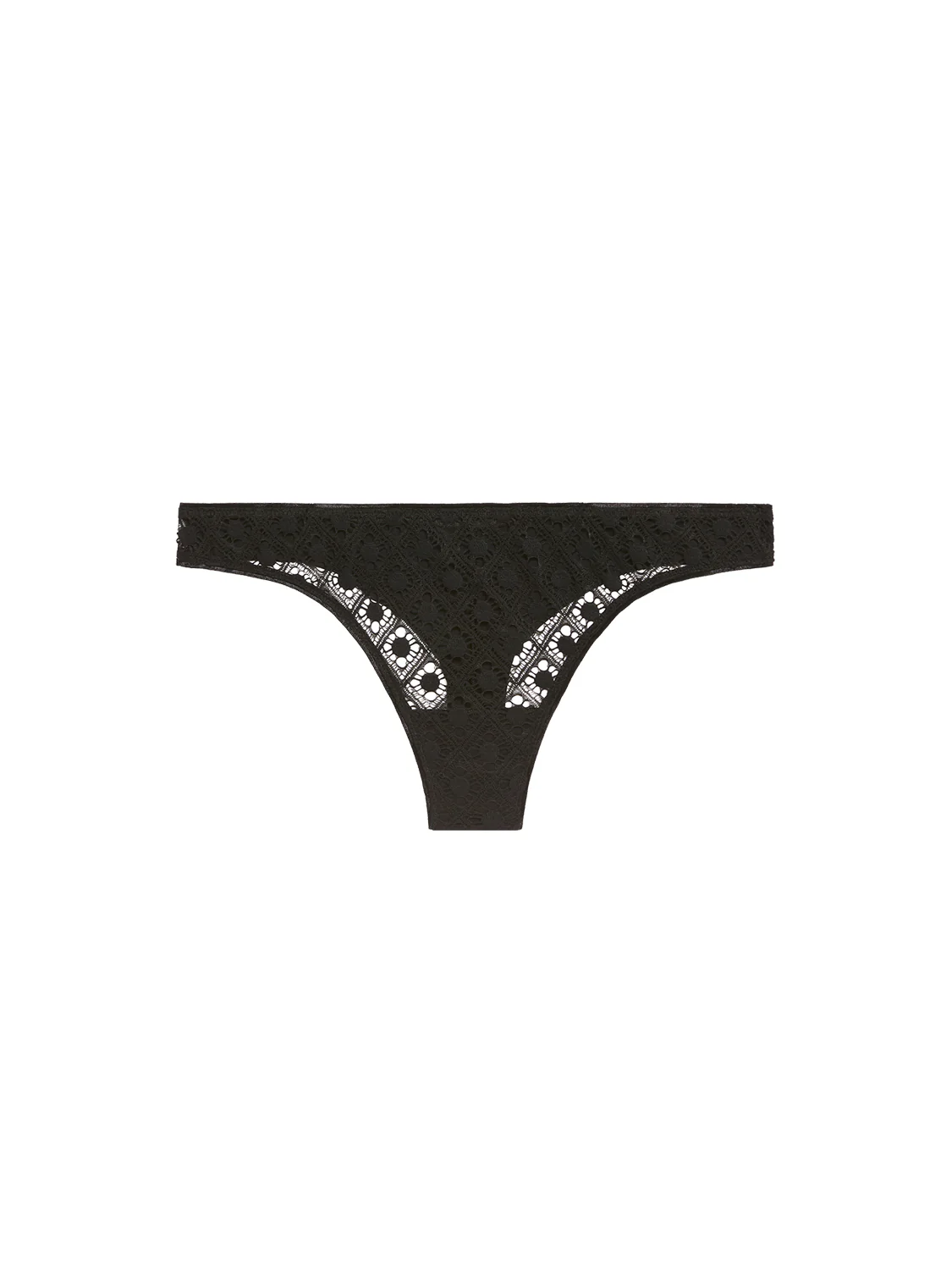 Tanga tout en dentelle recyclée. • Devant en dentelle.• Dos en crêpe avec finitions clean cut pour un porter invisible. Le + : Cette pièce fait partie de notre programme SIMONE CARES, avec une dentelle 100% recyclée. Référence : 1F5710.015