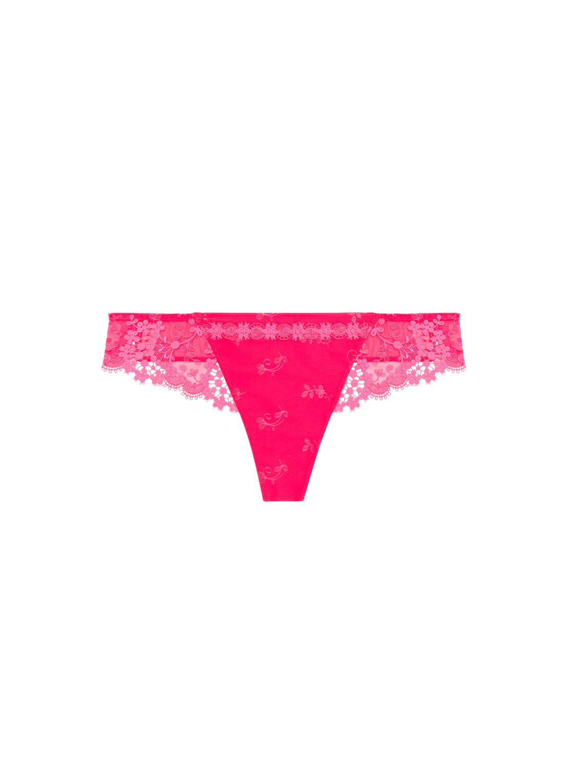 Tanga en broderie, guipure et satin Jacquard.