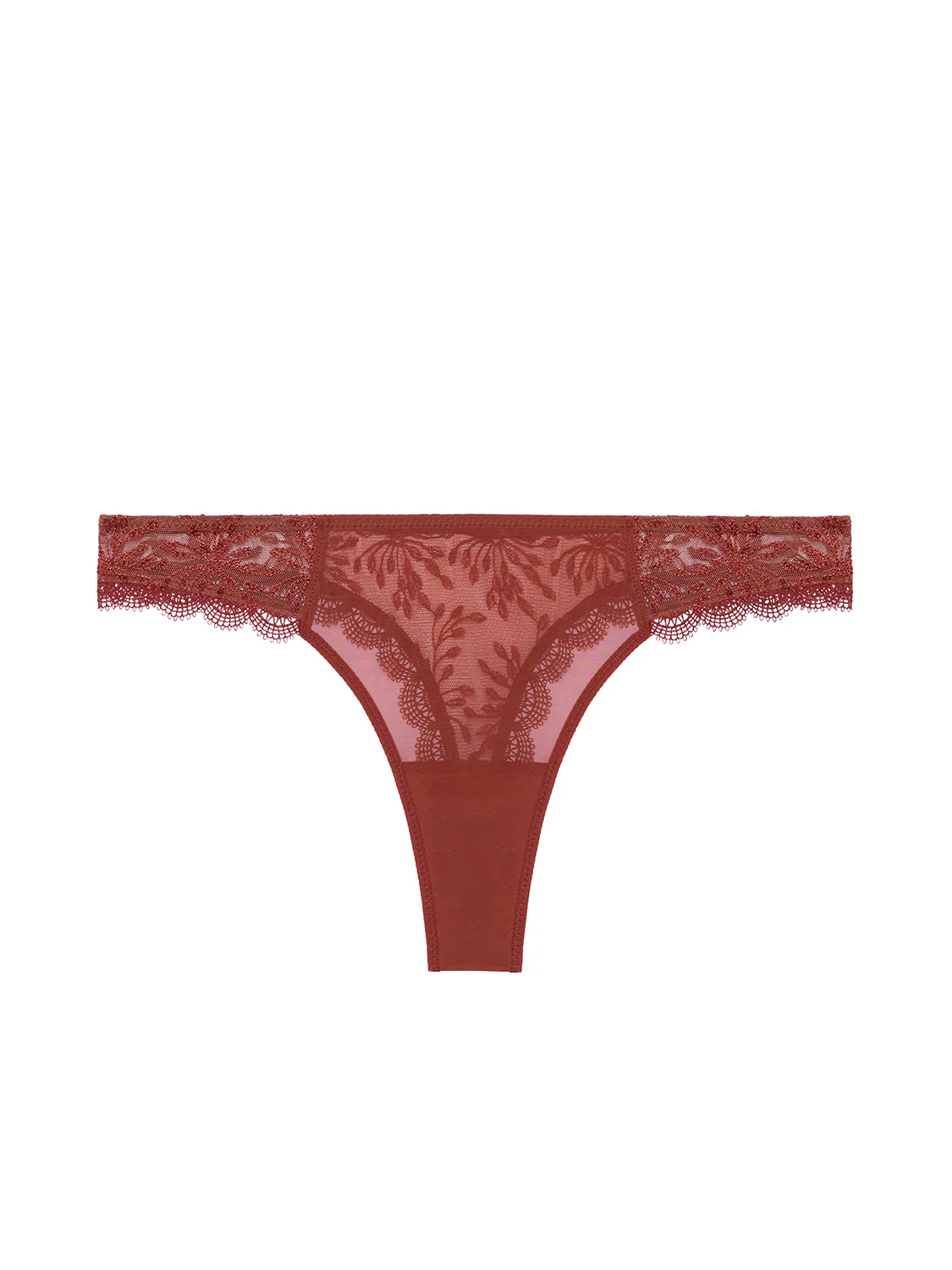 Broderie raffinée, guipure et tulle pour cette ligne élégante et irrésistible. Tanga en broderie et tulle. Ligne éco-responsable SIMONE CARES : le tulle élastique de ce produit contient 86% de polyamide recyclé issu de chutes de production. Référence : 1A2710.260