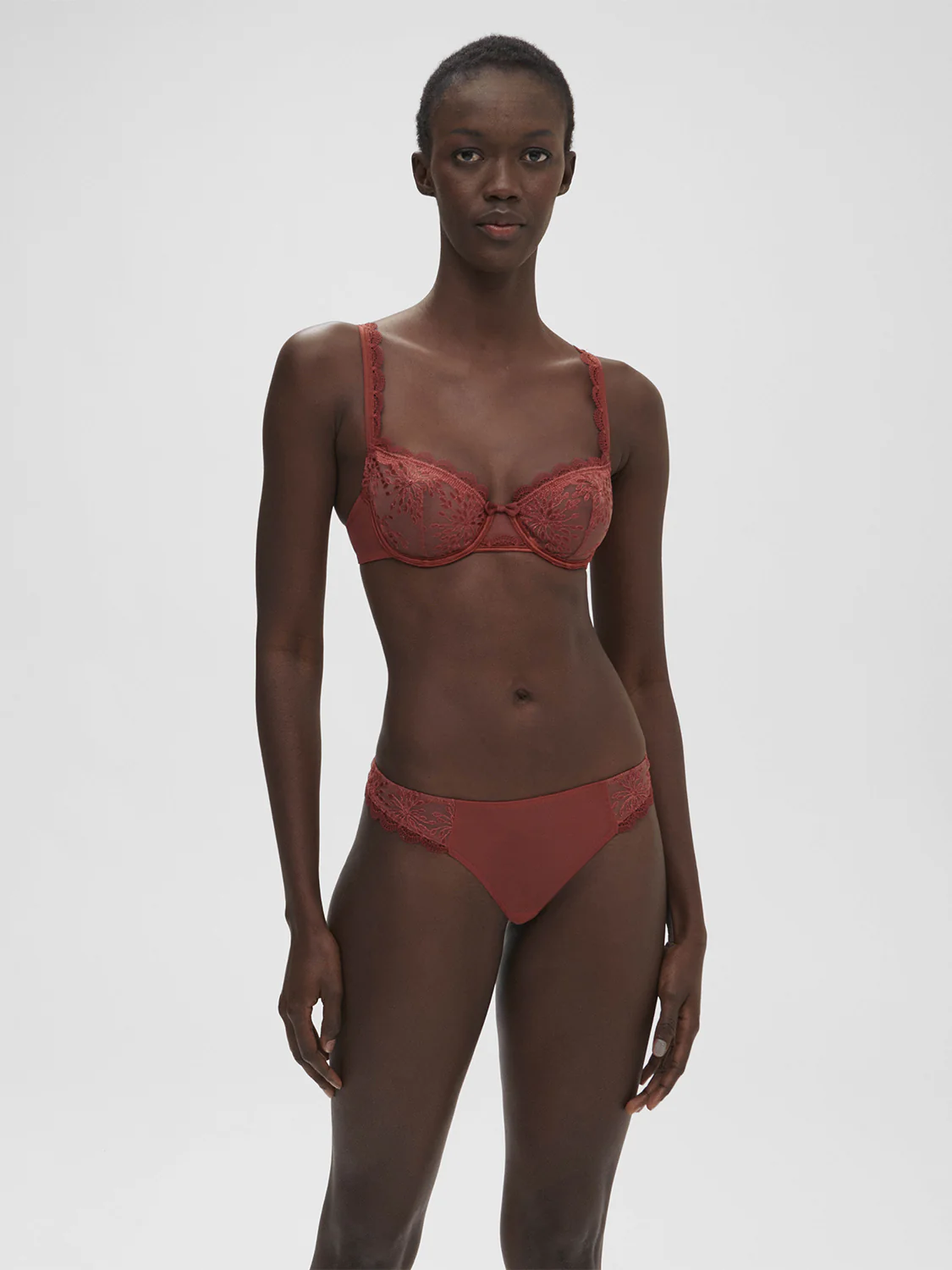 Broderie raffinée, guipure et tulle pour cette ligne élégante et irrésistible.